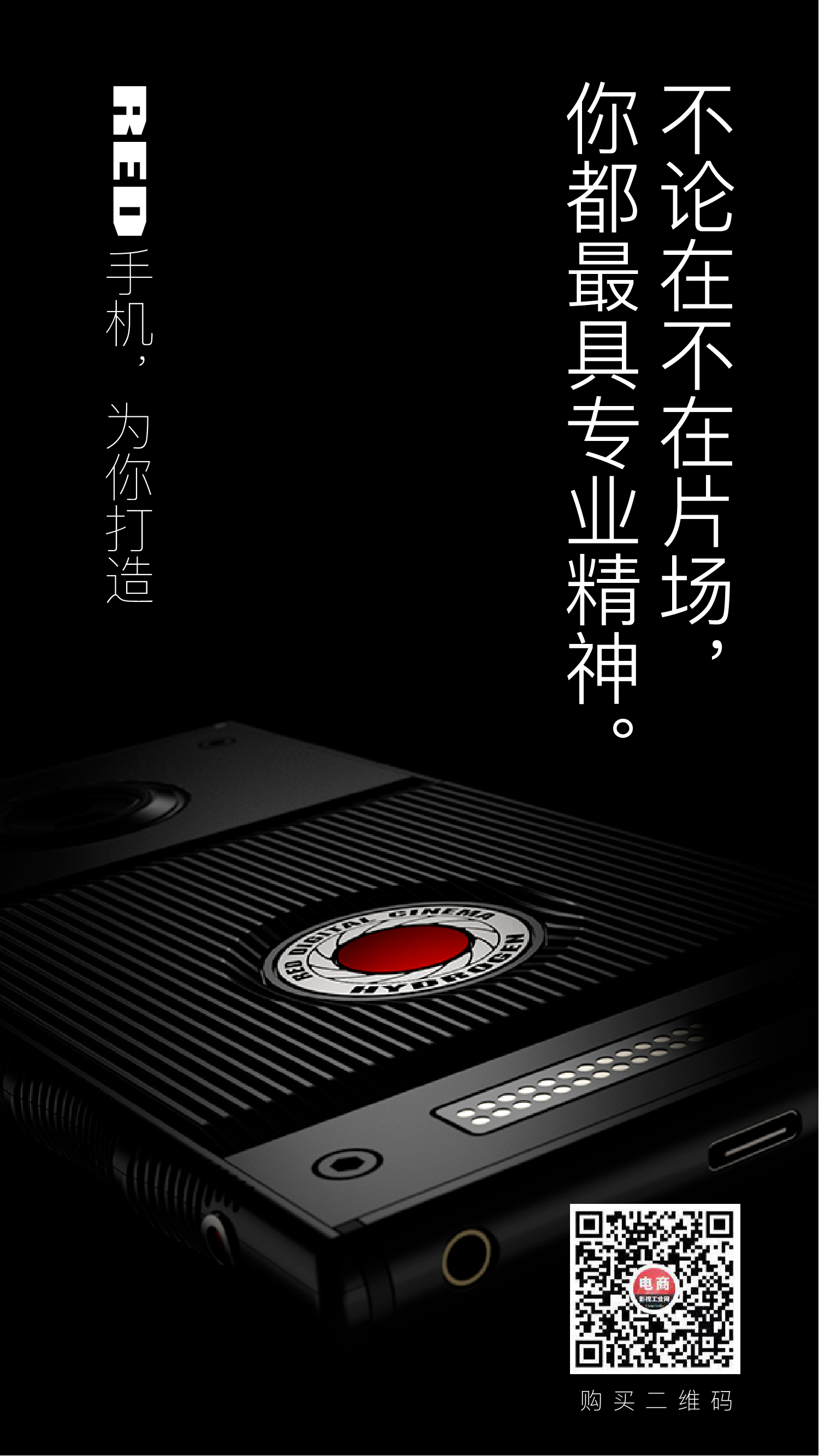 你距离专业的影视范,就差了这个手机---RED Hydrogen One, 识别二维码购买,再送RED 帽衫。