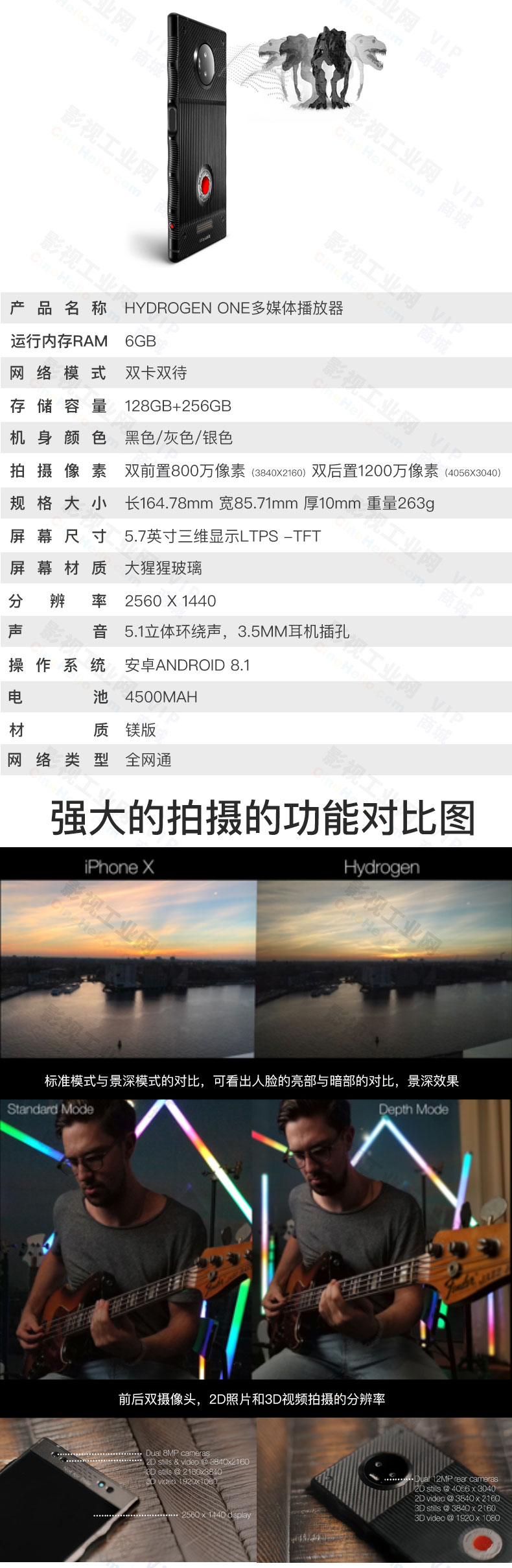 RED手机最大的亮点:四维(4V)全息屏幕”,5.7英寸,QHD分辨率,支持裸眼3D/4V(三维融合技术)