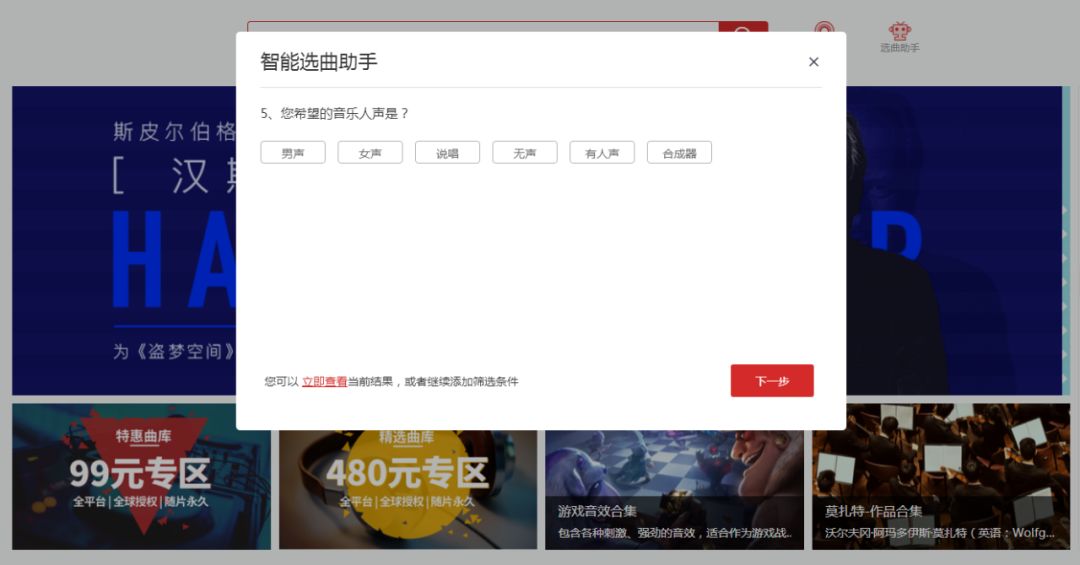 有部分用户对音乐的认知不够深入,或者需求歌曲难以描述,可以通过使用“选曲助手”来一步步明确目标歌曲类型,辅助自己进行快速选曲。