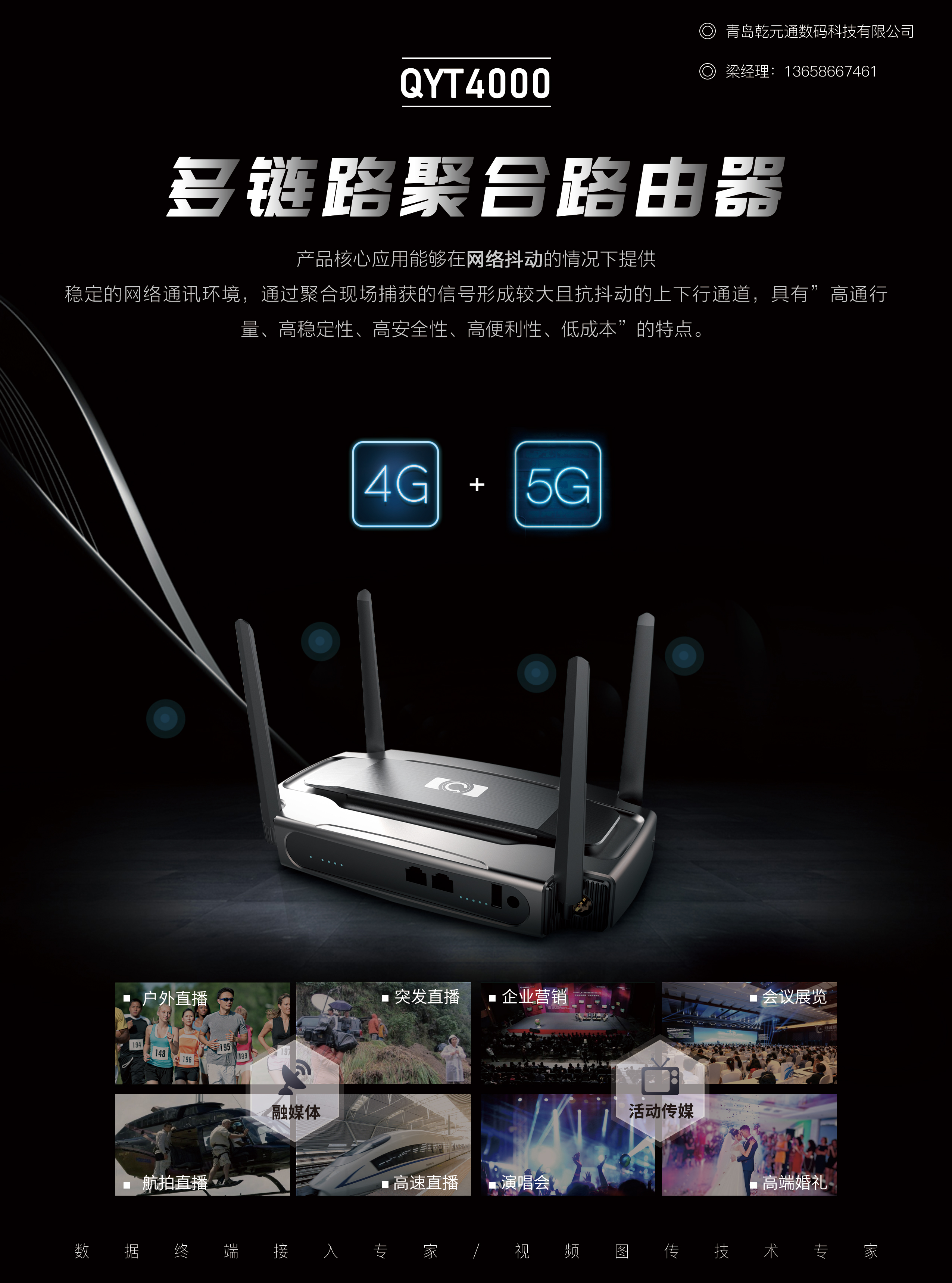 广泛应用于:户外直播、应急场景通讯(视频回传)、人员密集通讯、弱网环境通讯。