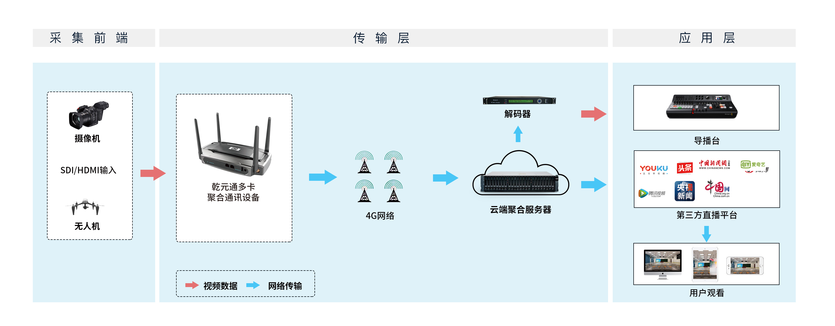 对于直播媒体来说,利用乾元通多卡聚合路由器(QYT-4000)可充分发挥媒体和直播平台双向对传优势,将视频的时效性和真实性做到极致。