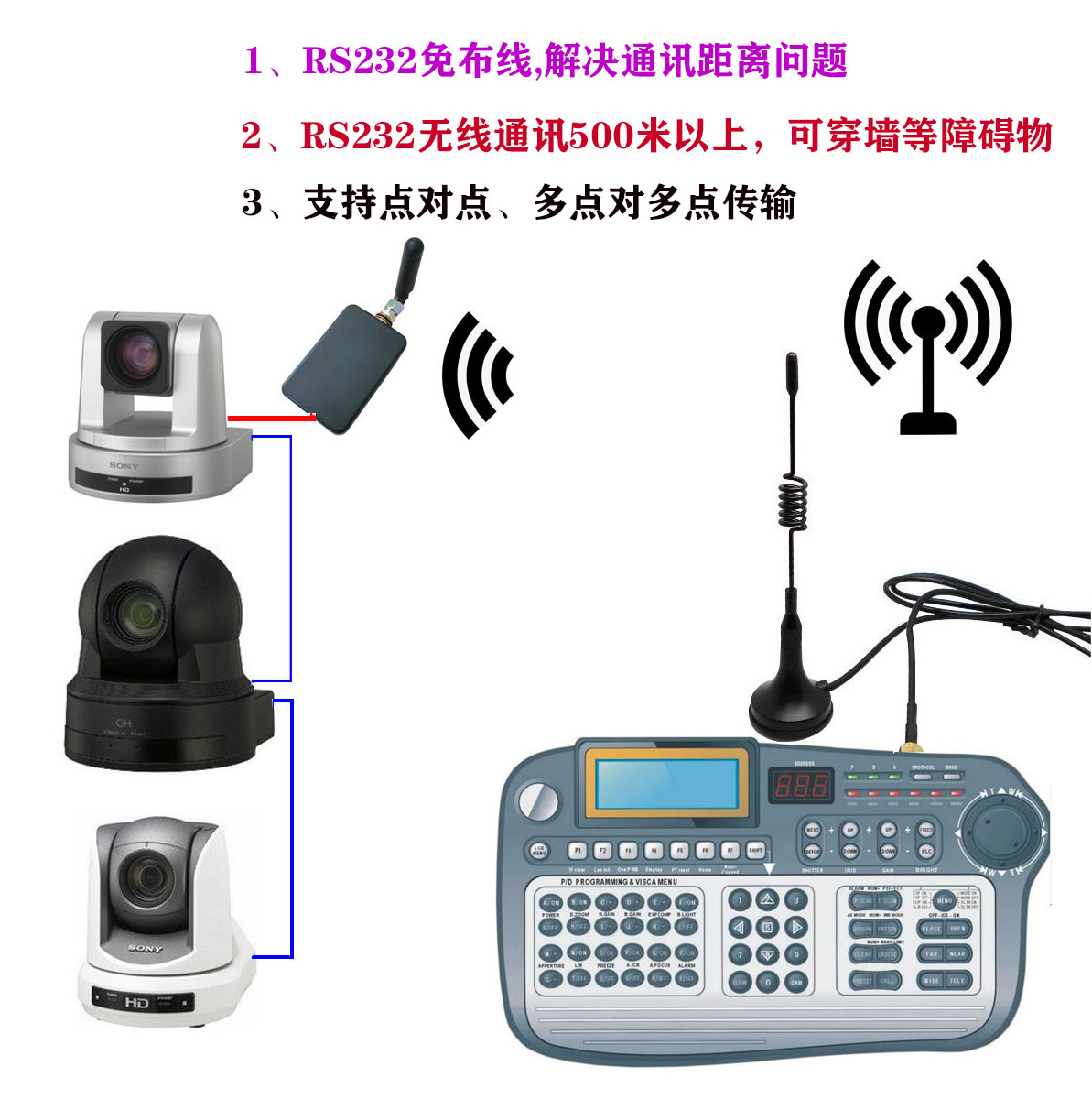 高清会议摄像机三维摇杆无线控制键盘功能