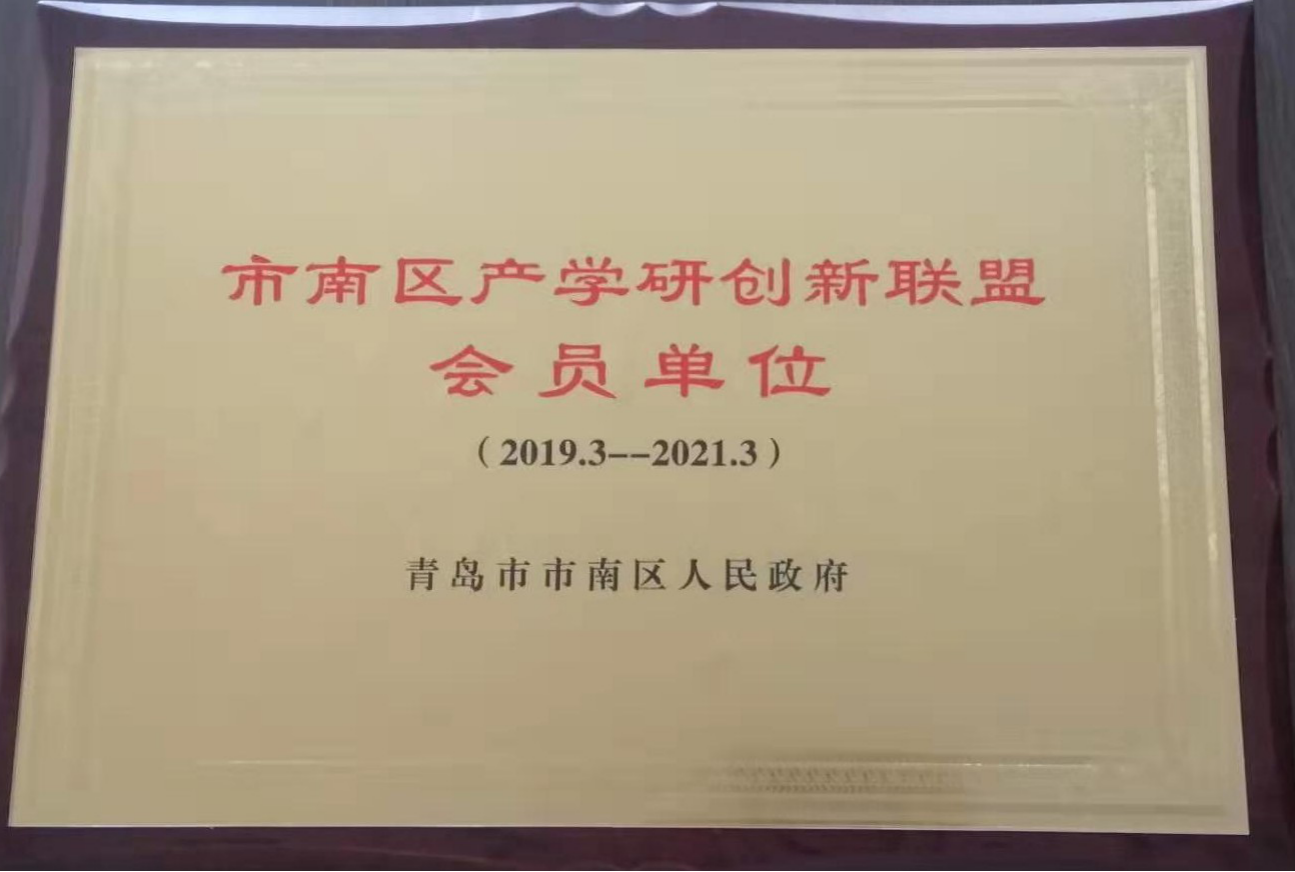 2019年3月,获得青岛市市南区人民政府颁发的“市南区产学研创新联盟会员单位”牌匾。