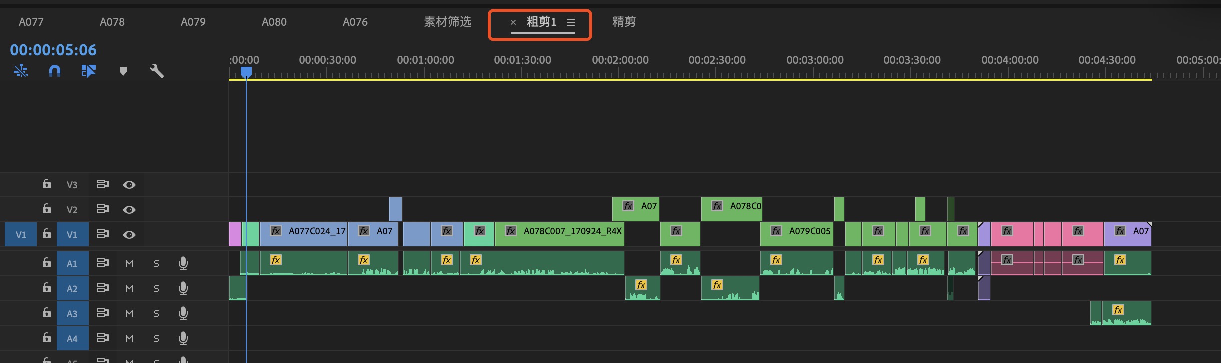 四、建一条时间线,把挑出来的素材放一起再挨着查看一遍