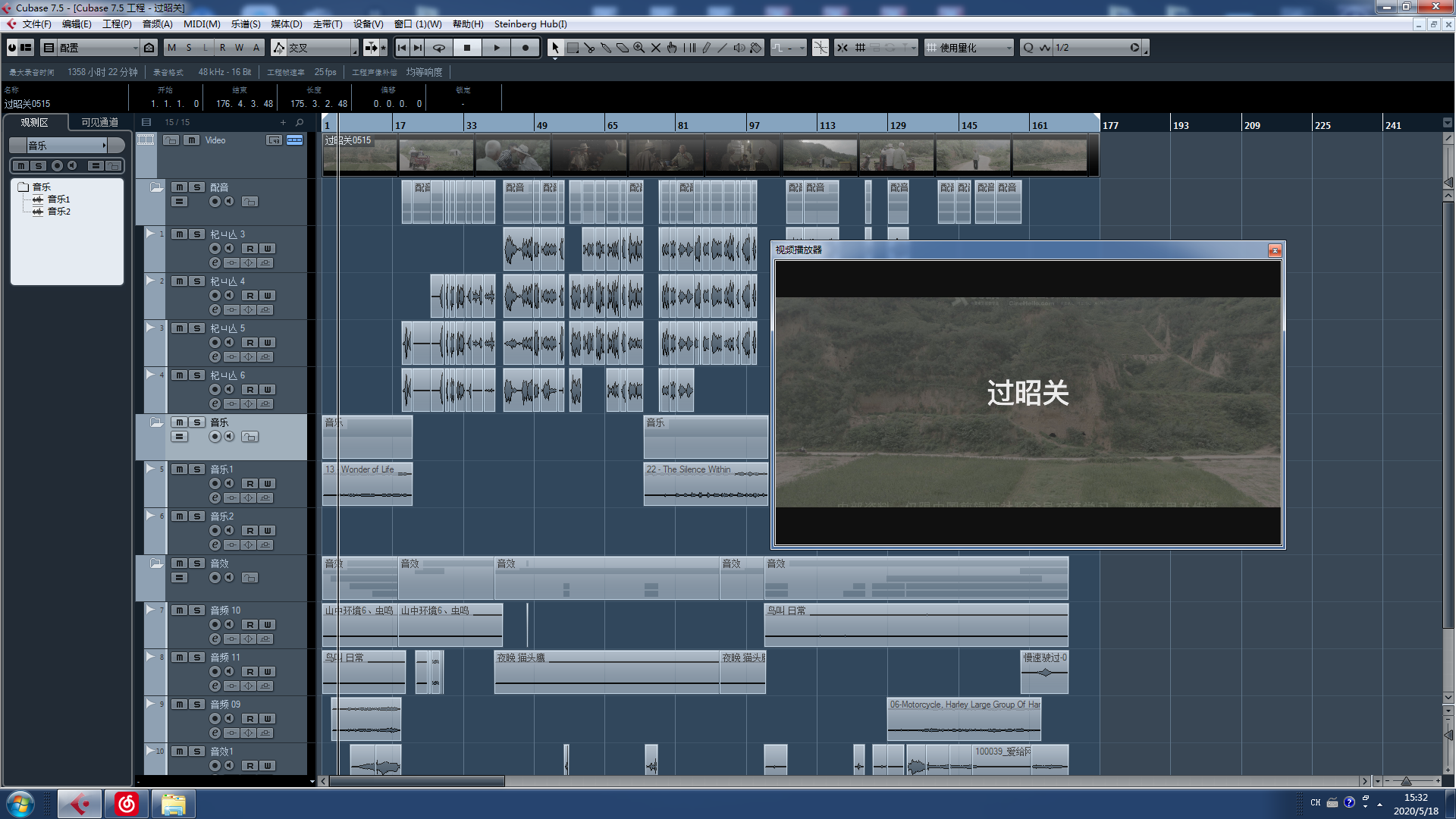 声效制作的软件使用的是cubase7,拿到这个短片首先是把对白和动效分离,并为对白做一些简单的配平处理。