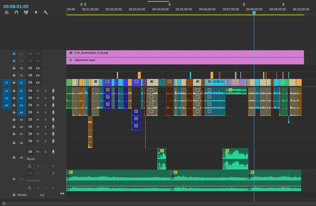 • 删掉Camera Sound的轨道(这里的操作是有疑问的,不知在专业流程里是否要保留原视频文件的音频轨)