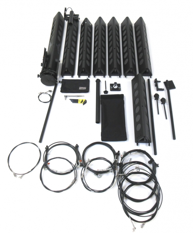 TRIANGLE PRO SUPER系统套装,7.6米摄高、5.4米前臂长,全臂长8米,套装包括:臂杆、钢索、重型三角架、电控系统(遥控云台、佳能镜头(8针)控制配件、控制盒、电池盒、聚焦/变焦/光圈控制手柄、云台控制手柄、水平(垂直)控制马达集成、控制电缆,三轮车架及三轮路面车轮(含运输箱不含配重及监视器)