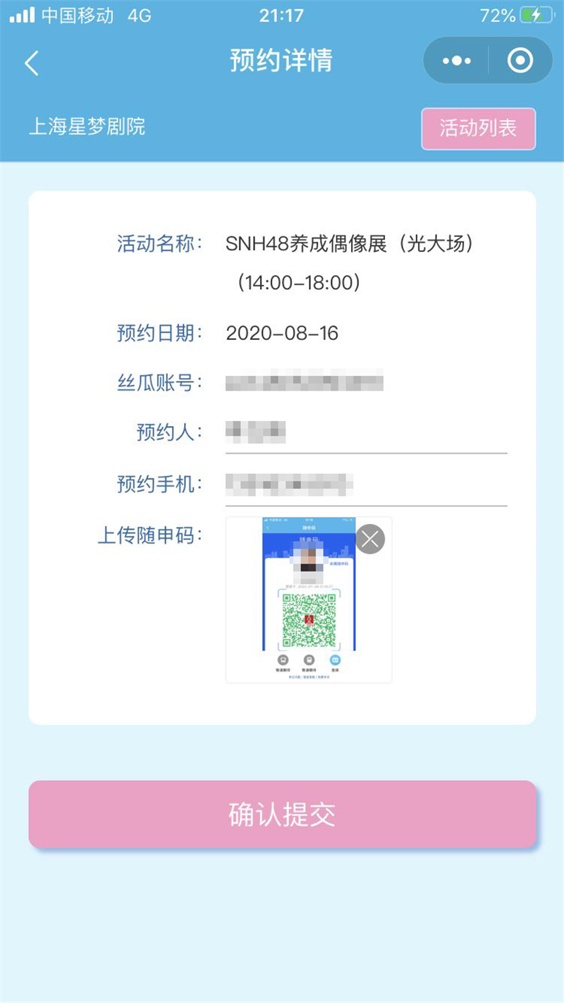 活动预约时间留意snh48官方微博 (https://weibo.com/snh48cn)