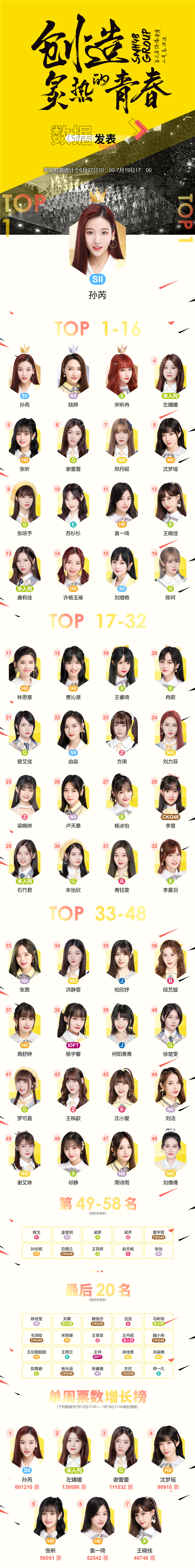 SNH48 第七届总决选第三周周报发布 孙芮第一