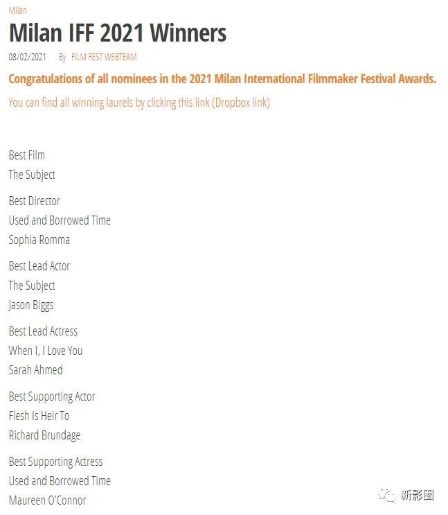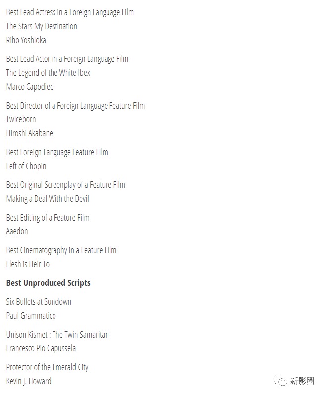 新影圈—全球电影节报名获奖平台(www.sfilmmaker.com), 已签约获得超过550家国际电影节的独家中国征片及评审授权,帮助超过1700部华语影片获得国际奖项。新影圈旨在帮助搭建中国电影作品的国际输出的桥梁,让华语影像之光耀眼世界。更多电影节报名及获奖,请关注我们!![]()