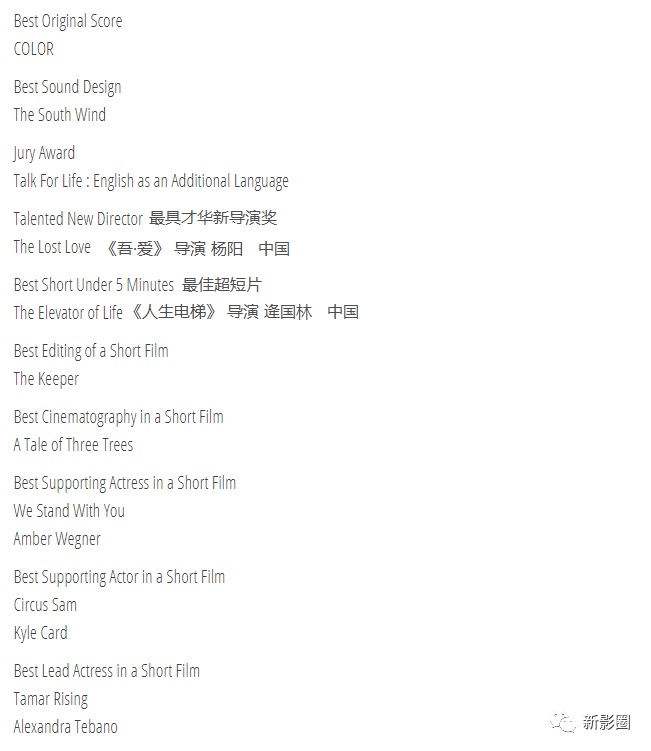 再次祝贺以上获奖影片及其团队,组委会将很快安排奖杯的邮寄,祝各位春节快乐!