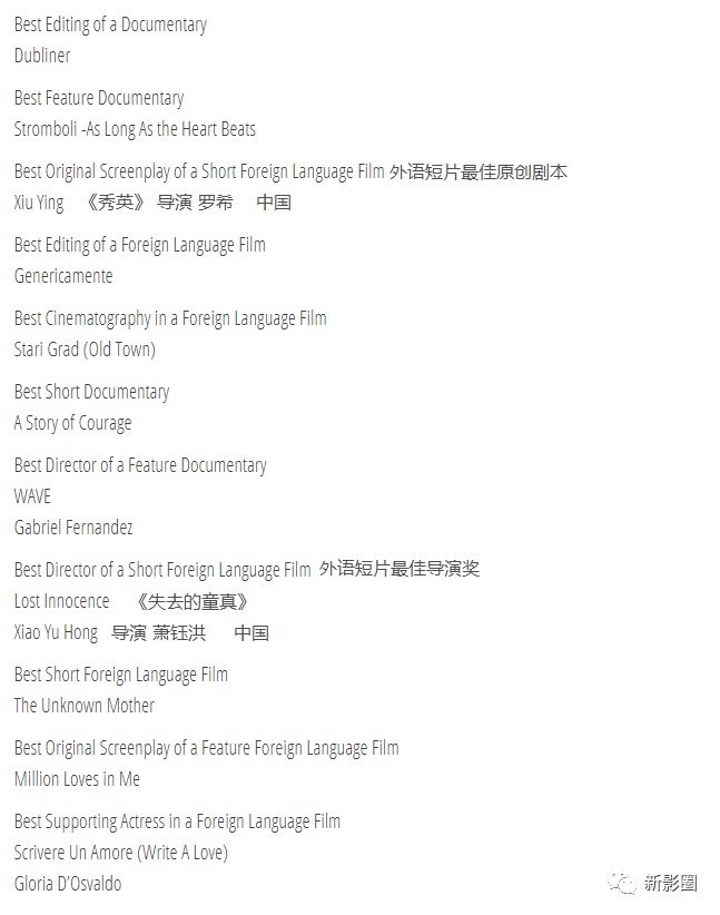 米兰国际电影节获奖名单公布,4部中国影片斩获大奖!