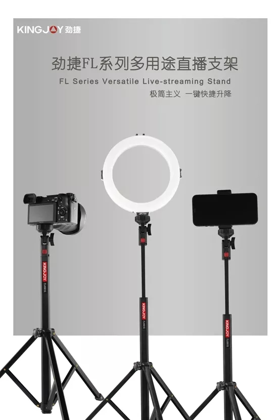 劲捷 (KINGJOY)品牌作为国际品牌,拥有丰富的产品线,类目涵盖摄影器材,摄像器材,直播器材,补光灯,全景云台,手持云台等。