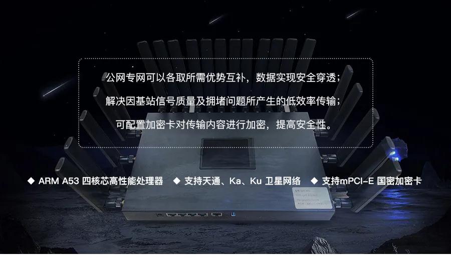 可识别各类运营商的数据卡,也可集成卫星链路,实现四路/六路等通信聚合。弥补5G覆盖差、4G带宽低的通信瓶颈。