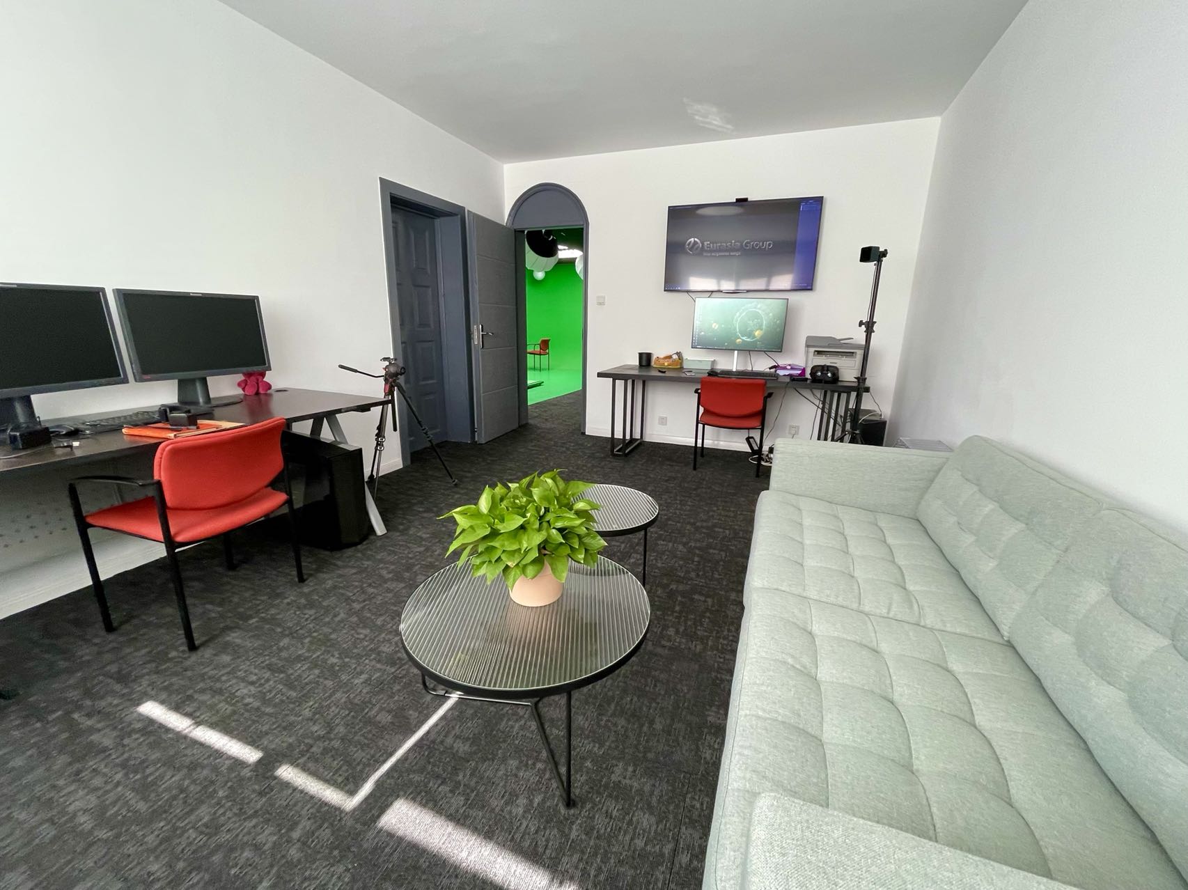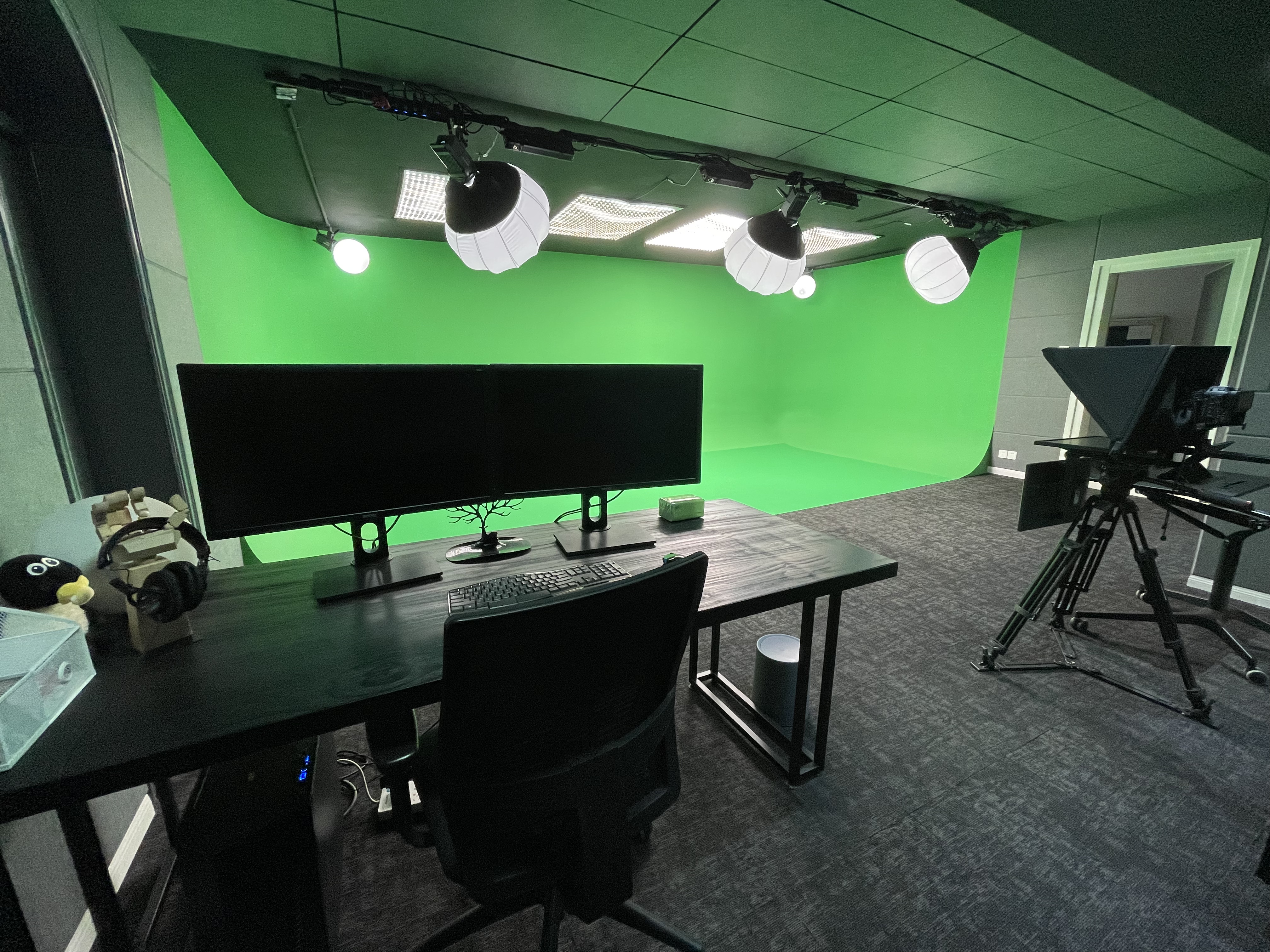 上海市中心的虚拟演播室、绿幕抠像、绿幕棚、摄影棚、直播网课录制场地