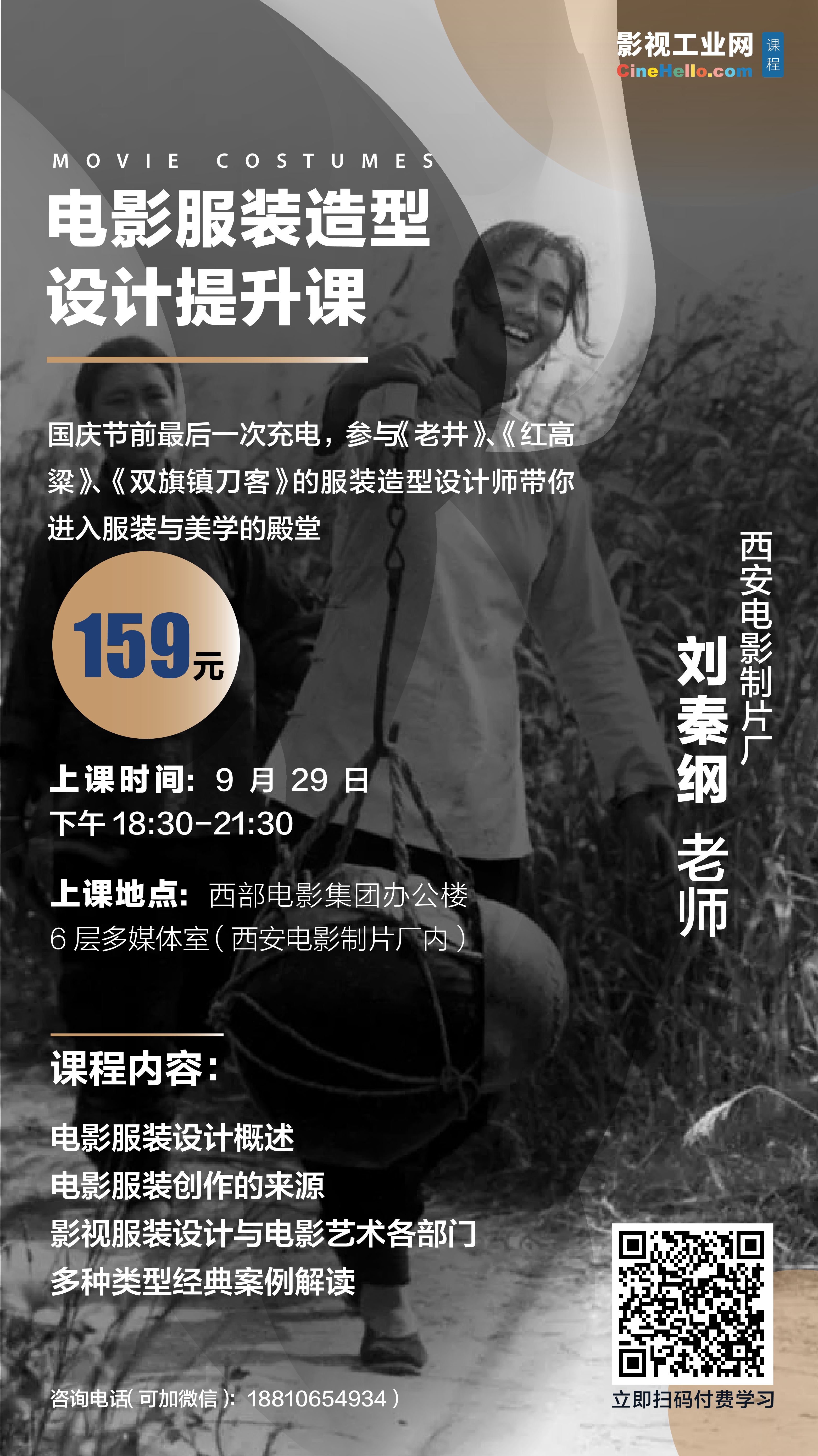 西部电影集团(原西安电影制片厂)国际战略部开发的电影服装设计提升课正式开始招生。这是针对从业者的线下精华沙龙。国庆节前最后一次充电,刘秦纲老师带你进入服装与美学的殿堂