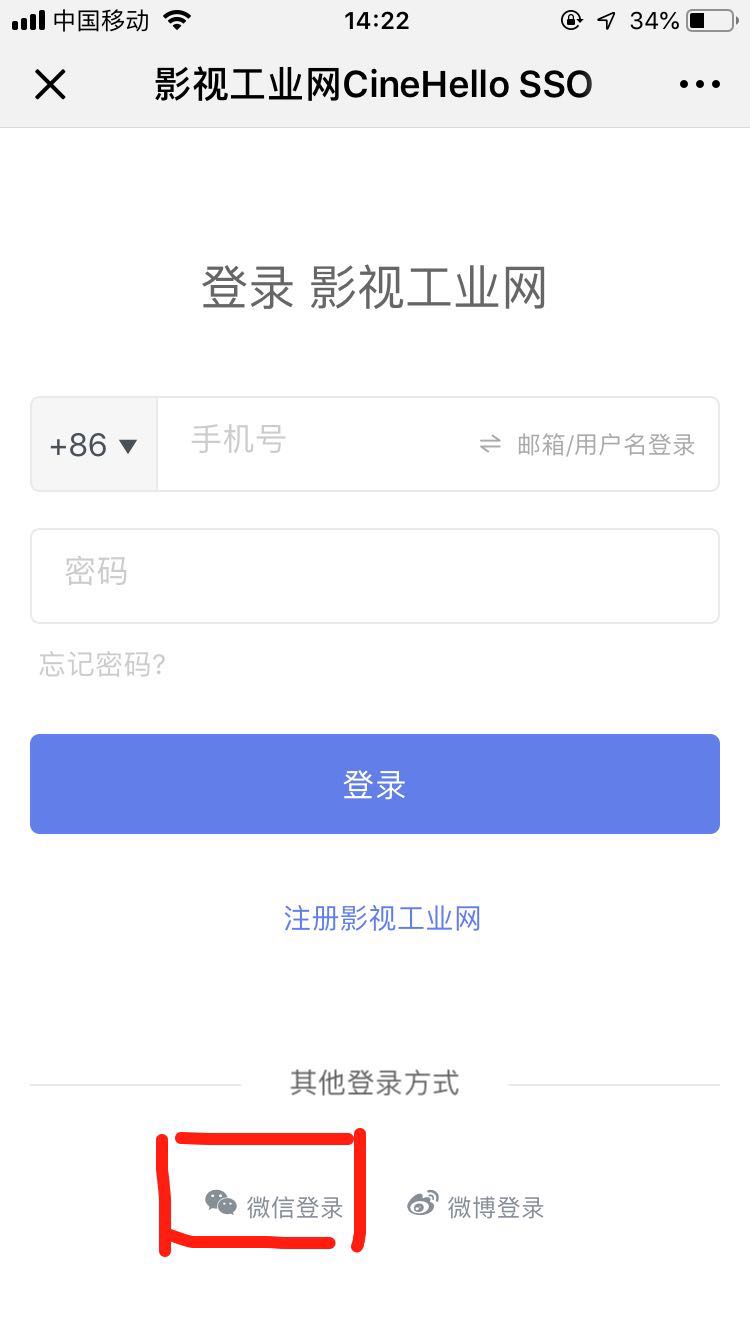 2、登录影视工业网,可以选择微信登录比较快捷方便