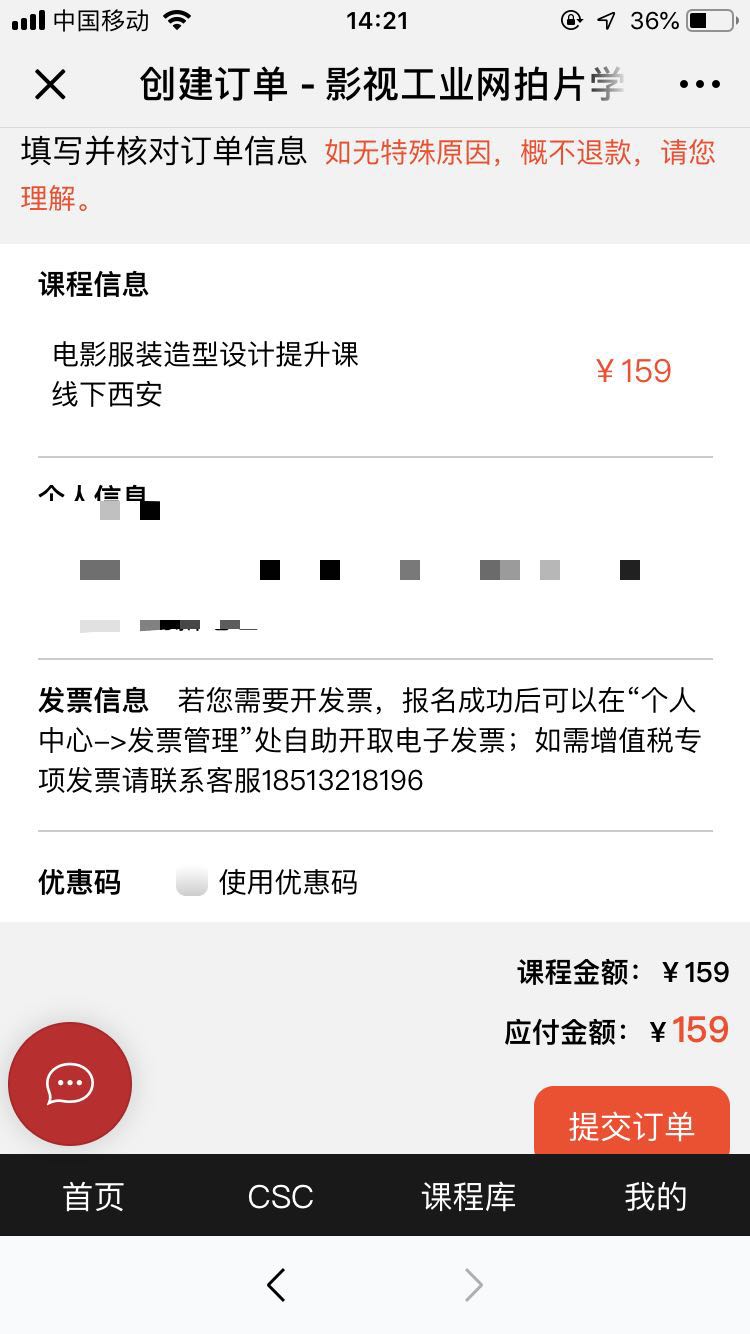 3、确认订单信息选择付款