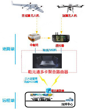 尽管无人机在电力巡检应用中占了很多优势,但真正应用起来还有一定的困难。就拿超远图传问题来说,无人机图传方案多数只能实现本地图传显示或者采用单卡4G传输方式,高清图像在传输过程中出现卡顿或中断,远程的指挥中心很难准确判断现场情况,作出正确的决策,针对此困难,使用乾元通QYT-X1S,可为无人机机体、地面站、远程指挥中心构建稳定可靠的数据回传链路,实现无人机拍摄的视频实时回传到指挥中心,为了解电网现场情况提供实时的高清画面采集,为巡检工作人员决策提供依据,让无人机电力巡检工作更精确。
