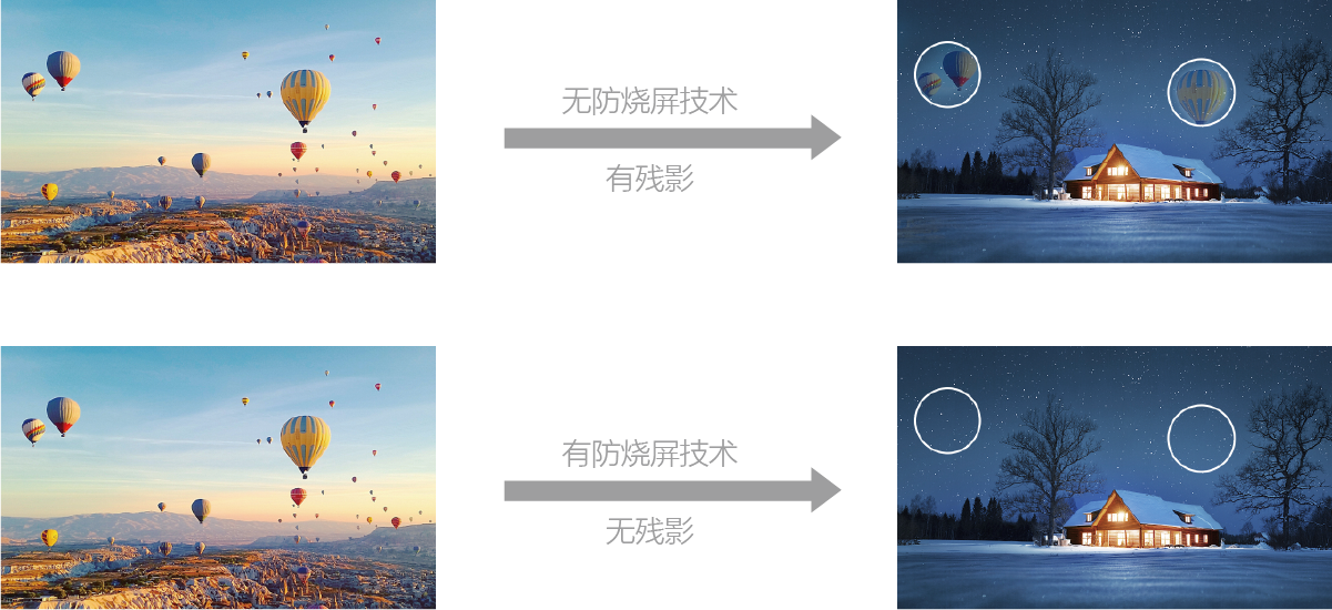 其他OLED监视器无防烧屏技术与康维讯4K OLED监视器有防烧屏技术的对比
