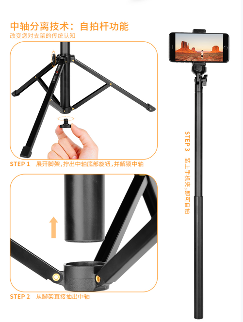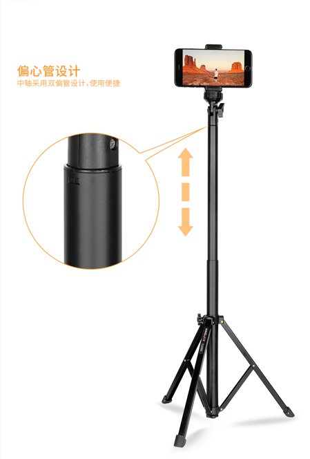 更妙的是,偏心结构还让中轴的 “变身” 更丝滑。想从三脚架切换成自拍杆?拧开底部旋钮,直接抽出中轴就行,整个过程流畅到像在玩 “变形玩具”,完全不用费劲折腾。这种 “稳得住、变得出” 的特性,直接把拍摄时的 “忐忑感” 换成了 “安全感”。