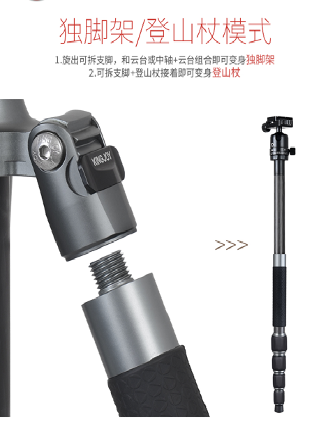 此外,劲捷 A81+T11 三脚架还通过多功能结构强化 “稳” 的适配性:其具备可拆中轴功能,拆卸中轴后可实现贴近地面的低角度拍摄,捕捉花草、岩石等微观场景时,脚管直接落地支撑,稳定性远超常规伸缩中轴;支持可拆独脚设计,将单节脚管与云台组合,可瞬间变身为独脚架,适配运动抓拍、快速移动拍摄等灵活场景,兼顾稳定性与机动性;同时拥有倒置功能,将相机倒置安装后,能让镜头更贴近地面,配合低重心云台,微距拍摄时画面清晰度与稳定性双重提升。这些设计让 “稳定” 不再是单一形态,而是能根据拍摄需求灵活调整的 “可靠后盾”。