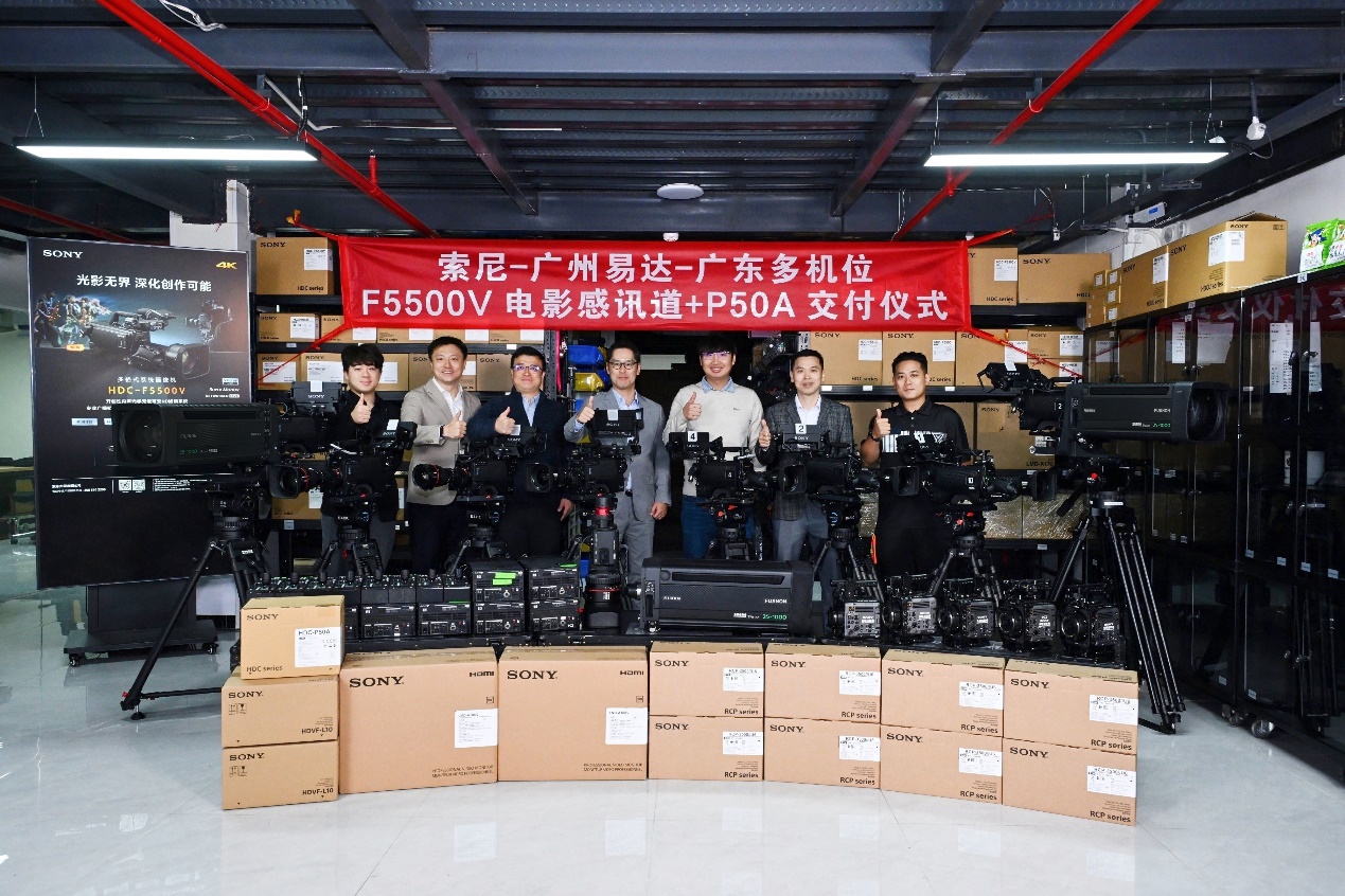 12月4日上午11时,交付仪式在广东多机位影像科技有限公司(以下简称广东多机位)隆重举行。索尼(中国)有限公司电子系统本部影像方案市场部总监和田拓马、产品经理张乐迪、新行业发展科经理黄腾飞、销售代表廖张越及广州易达影视器材有限公司总经理李志彪等代表出席,与广东多机位公司总经理黎钰坤及制作团队共同见证设备启航。
