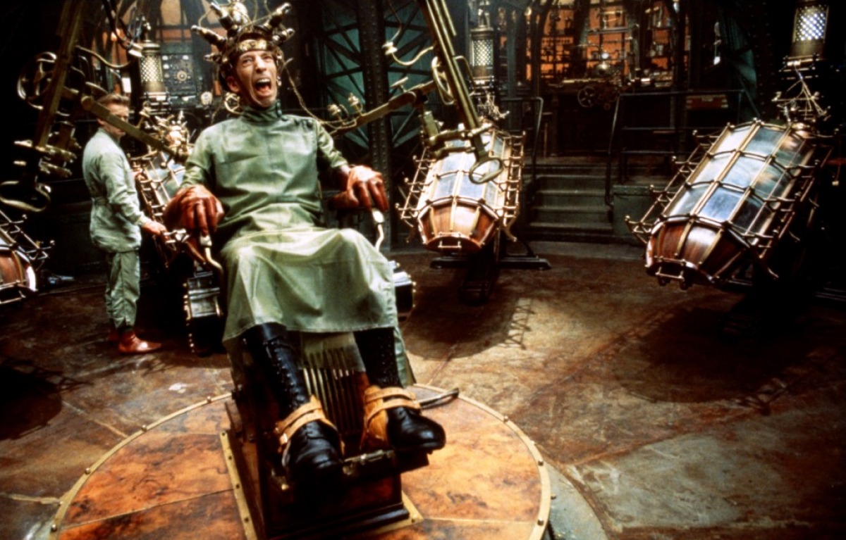 巨蟒戏团出生的特瑞·吉列姆的电影世界首先肯定不是正常的,其次必定充满奇思妙想,就如同电影中文名称一样。电影设定了一座类似于反乌托邦小说《1984》描绘的城市,钢筋混凝土工厂和方方正正的建筑压抑着人性,而主角飞向天空后见到是天堂一般的景色。