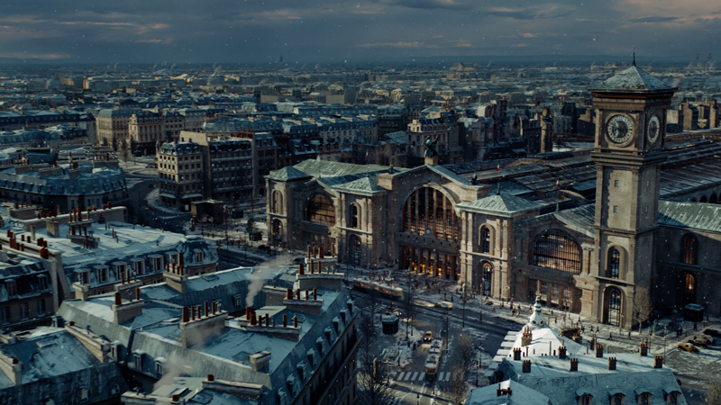 这部电影除了对默片的致敬以外,最大的视觉成就在于用电脑特技重现了上个世纪20年代的大都会巴黎:巴黎圣母院、巴黎图书馆、街道以及桥梁……最令人兴奋的是主要场景都集中在巴黎火车北站,各种时代符号令观众重回黄金时代的巴黎。