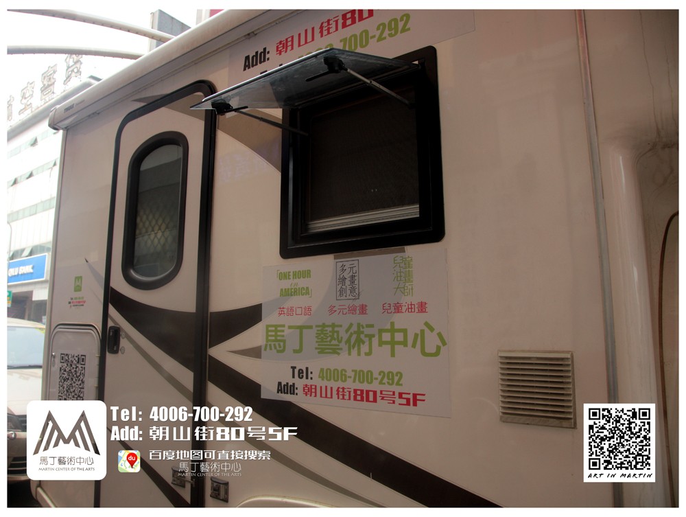 這麽有趣的事情,馬丁藝術中心怎麽能不與更多的小朋友分享呢?大家註意啦!五壹節後,馬丁藝術中心宣傳房車將正式出動,等候在小學門口,感興趣的小朋友盡可以來車裏坐坐,大膽的釋放妳的好奇心吧!