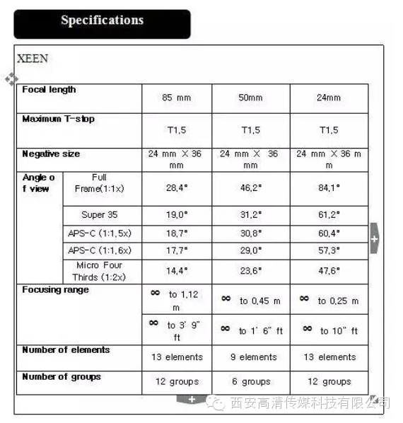 以上是XEEN系列电影镜头的一些参数,目前我们手中拿到的是3只EF卡口的镜头,但是在表格中我们看到,三阳这一次也并没有局限在某一个品牌上。