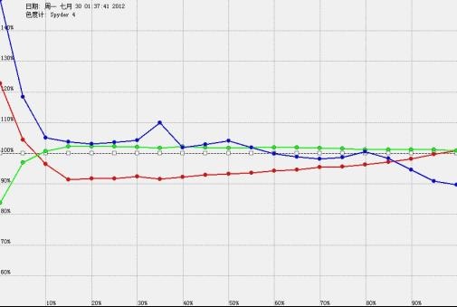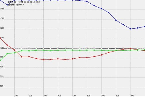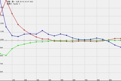 接到尊正寄来的spyder4pro和测试软件,第一时间对导控室的监视器、显示器进行了测试,结果如下。