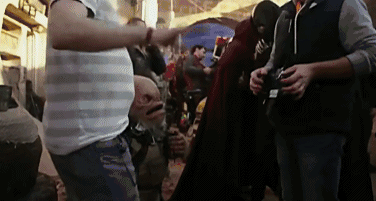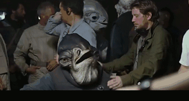 拍摄期间 剧组人员、机器人以及各类星际生物在剧组一起东奔西跑 仿佛置身真的星球大战战场之中