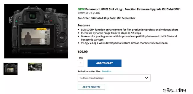 美国松下官网GH4的v-log固件已经上架了,售价99.99美元。
