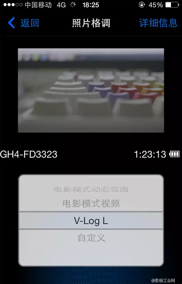⑧这时,你观测一下你的相机,拍摄模式已经显示为V-log模式,画面饱和度降低,宽容度增加。现在明白什么叫松下的小漏洞。然后你就可以愉快的用V-log拍摄了。但是紧接着你会发现一个问题,如果你用V-log拍摄,没问题,但是如果切换了别的风格,比如标准,就再也无法切换回V-log了。需要重复上面,打开app链接wifi链接步骤。那么怎么才能自由切换呢?